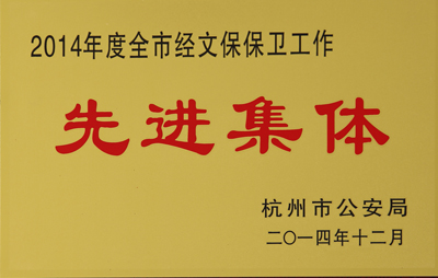 公司近兩年經(jīng)過對(duì)治安管理加大投入,尤其是強(qiáng)化保衛(wèi)隊(duì)伍組織建設(shè)及重點(diǎn)部位防盜硬件設(shè)施、技術(shù)裝備投入的有效運(yùn)行,公司保衛(wèi)工作成效顯著,先后被授予“2014年度全市經(jīng)文保保衛(wèi)工作先進(jìn)集體”稱號(hào),保衛(wèi)科被授予“余杭區(qū)經(jīng)濟(jì)文化保衛(wèi)戰(zhàn)線先進(jìn)集體”榮譽(yù)稱號(hào)。