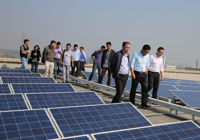 10月24日,杭州市發(fā)改委副主任江小軍與余杭區(qū)發(fā)改局、區(qū)經(jīng)信局、區(qū)供電公司、開(kāi)發(fā)區(qū)等有關(guān)負(fù)責(zé)人一行10多人到東華集團(tuán),就分布式光伏發(fā)電項(xiàng)目投入運(yùn)行情況進(jìn)行調(diào)研。