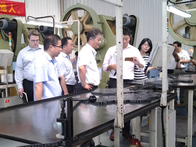 7月17日,豐田總部采購部負責人一行到東華生產現場參觀。傳動鏈事業部部長及技術質量處負責人陪同參觀。