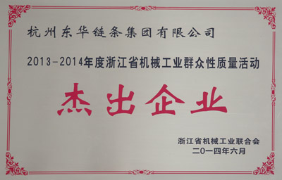 6月5日至7日,由檢測公司組隊,代表集團公司參加2013年至2014年度浙江省機械工業優秀質量管理(QC)小組成果發表會。全省40余家企業的75個QC成果發表。經過兩天的發表與評比,最終,檢測公司的《降低客戶投訴損失額》和工程鏈事業部的《提升大規格鏈板沖裁質量》分別獲得一等獎,工程鏈事業部的《減少81X鏈條不良率及提升產能》獲得二等獎。同時公司獲得了“2013-2014年度浙江省機械工業群眾性質量活動杰出企業”稱號;副總經理袁立華獲得“2013-2014年度浙江省機械工業群眾性質量活動優秀工作者”榮譽稱號。