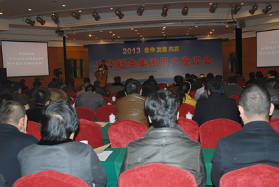 宣碧華董事長首先致辭。他說,我首先代表東華集團,對大家在百忙之中來參加東華的用戶座談會表示熱烈歡迎,也對大家一年來對東華的大力支持表示衷心感謝。過去的一年是比較困惑的一年,國內經濟形勢不太好,沒有高速增長反而有滑坡的跡象,特別是國際市場很明顯,金融方面,歐洲的主權債務方面的危機影響工業的發展,使很多訂單出現下降。從鏈條行業來看,很多企業外銷訂單明顯下降,基本下降30%以上,在這樣的形勢下,我們如何判斷一個企業是否健康?我從五方面判斷,一是訂單下降,客戶是否流失?如果我們的訂單下降,客戶沒有流失,這是暫時的,如果訂單下降,客戶流失,這是危險的;二是企業訂單下降與整個行業相比較的情況如何?東華外銷訂單下降與同行是同步的,說明這是國際發展趨勢,如果訂單下降比同行多,說明企業是有問題的;三是企業現金流是否斷層?有些企業投入一些高危行業,帶來現金流緊張,也是危險的。四是企業的員工隊伍是否穩定,骨干是否流失?如果說員工和骨干穩定,企業也是健康的;五是經營團隊是否健康?從老板到整個經營團隊,碰到目前形勢不好,是否能理性、沉著應對。這五方面如果判斷下來沒有問題,說明企業還是健康的。東華訂單與2011年持平,內銷有所增長,客戶沒有流失反而增加,所以說是健康的?,F金流比較富裕,整個2012年,包括技改投入、對外投資、基建投入、經營用款收支平衡,現金流健康。整個員工隊伍穩定,員工收入增加,同時,整個決策層看好形勢,對東華未來的發展充滿信心。