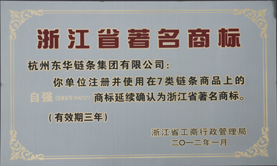 東華“自強(qiáng)”牌鏈條被認(rèn)定為浙江省著名商標(biāo)