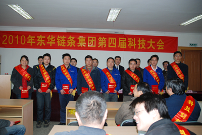 張總接著說,2009年完成并通過集團科協(xié)驗收的獲獎項目共22項。同時,東華自主創(chuàng)新技術(shù)成果獲得國家專利授權(quán)的有3項,新申報專利6項,其中發(fā)明專利1項。截止目前,東華集團共有有效授權(quán)專利技術(shù)37項。東華博士后科研工作站、東華院士工作站正常運行,并取得成效。同時參加國家863計劃中的項目也在正常開展試驗。2009年我們還在德國、荷蘭、美國、英國、泰國建立東華海外全資子公司,收購德國KOBO公司、與日本企業(yè)達成品牌與技術(shù)合作意向,使公司技術(shù)研發(fā)水平逐步與國際先進水平接軌,公司技術(shù)研發(fā)能力得到有效提升。余杭新廠區(qū)建設(shè)以科技創(chuàng)新作為內(nèi)涵,注重采用新技術(shù)、新工藝、新工裝設(shè)備,包括開發(fā)、引進高效自動化設(shè)備,使新區(qū)建設(shè)成為技術(shù)創(chuàng)新、新技術(shù)、新工藝采用的過程,確保了新區(qū)建設(shè)成為國內(nèi)一流的鏈條研發(fā)制造基地。