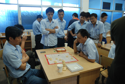 為了運(yùn)動(dòng)會(huì)當(dāng)天完成所有運(yùn)動(dòng)項(xiàng)目的比賽,本屆運(yùn)動(dòng)會(huì)規(guī)定了個(gè)人限報(bào)兩個(gè)項(xiàng)目,不包括團(tuán)體賽和每個(gè)單項(xiàng)各分工會(huì)的報(bào)名人數(shù)最多不能超過(guò)2名。因此,9月中下旬以來(lái),各部門(mén)、分廠均紛紛舉行了內(nèi)部淘汰賽,以派出最優(yōu)秀的員工參賽。9月26日,舉行了男女乒乓球、羽毛球半決賽。9月27日,舉行了男子圍棋、象棋;女子五子棋決賽。獲得圍棋前三名的是徐凱、朱寶德、黃海濱;獲得象棋前三名的是張建明、呂鐵軍、潘道元;獲得五子棋前三名的是肖輝、王衛(wèi)玲、龔娟。本屆運(yùn)動(dòng)會(huì)除圍棋外,個(gè)人項(xiàng)目均取前六名,團(tuán)體項(xiàng)目取前八名,集團(tuán)將在運(yùn)動(dòng)會(huì)當(dāng)天向獲獎(jiǎng)運(yùn)動(dòng)員和優(yōu)秀團(tuán)體頒發(fā)榮譽(yù)證書(shū)和錦旗,并給予一定的物質(zhì)獎(jiǎng)勵(lì)。