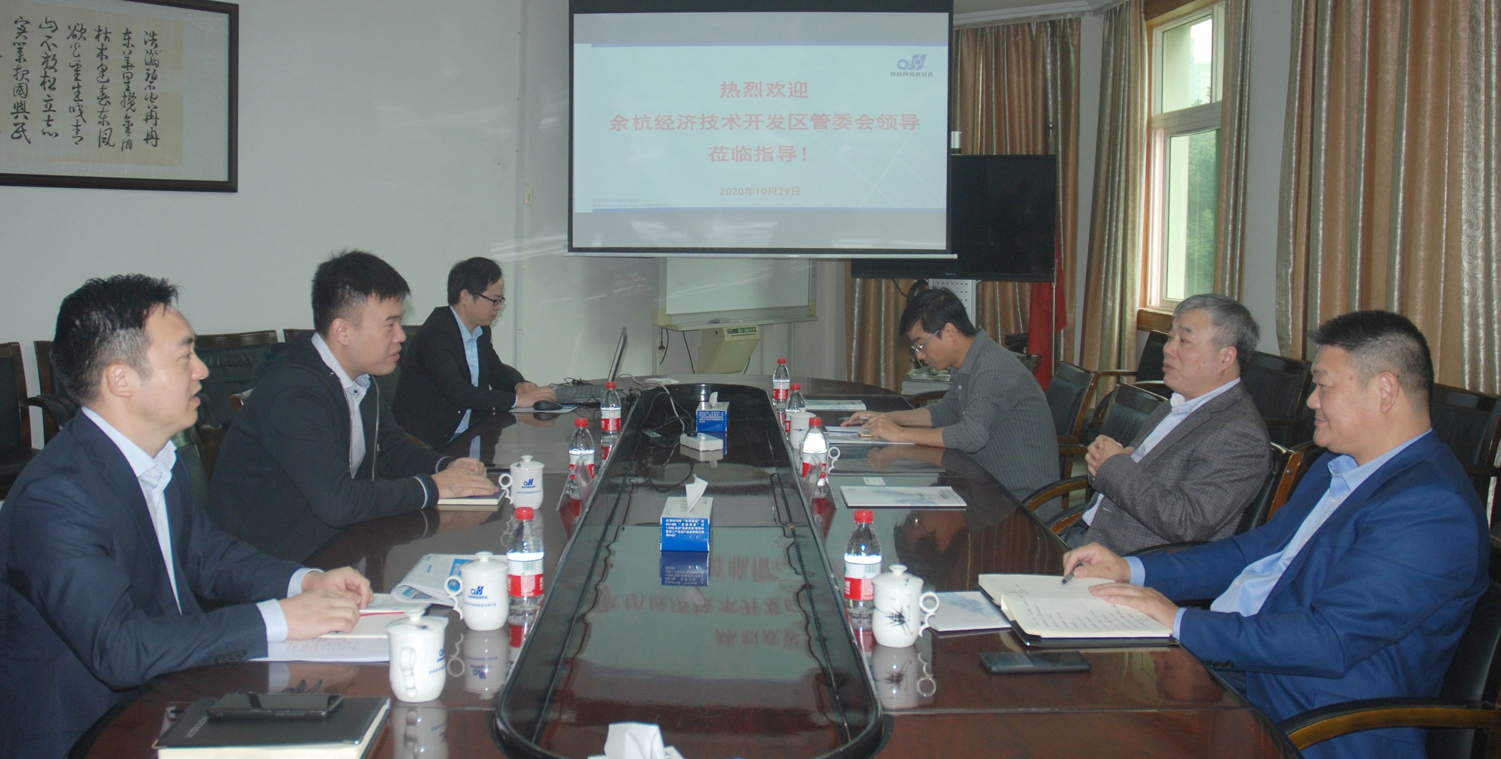 日前,余杭經濟技術開發(fā)區(qū)管委會副主任陳葉根、產業(yè)發(fā)展局副局長黃亮一行到公司調研。副董事長宣成、管理部副總經理劉冬根等領導陪同調研。