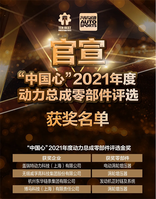 東華鏈條獲“中國心”2021年度動力總成零部件金獎