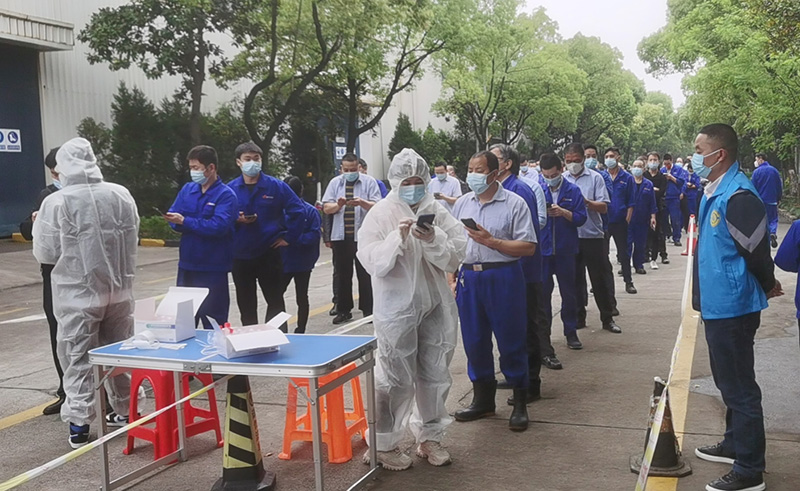 對內(nèi),公司在各廠區(qū)設(shè)置核酸檢測點,進行全員檢測;員工進廠及外部來訪人員一律按防疫要求檢查;?每天對各廠區(qū)嚴(yán)格消毒成為常態(tài)化舉措;專人統(tǒng)計員工的體溫、疫苗接種、核酸檢測、健康碼變色等情況,登記造冊,及時了解員工情況。