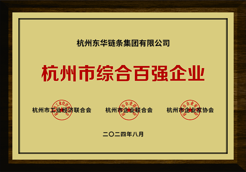 東華鏈條榮登“2024杭州市綜合百強企業”榜第59位。
