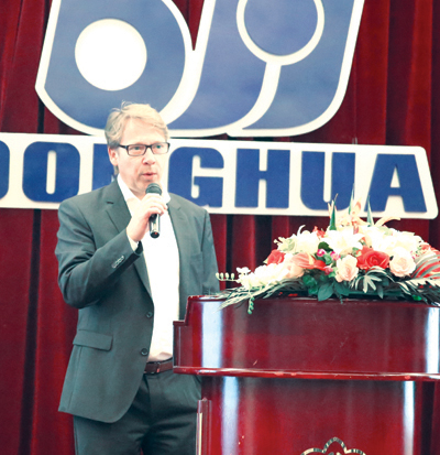 東華荷蘭公司總經(jīng)理Morskate就東華全球制造、品牌建設(shè)、銷售等進(jìn)行了匯報和展望。