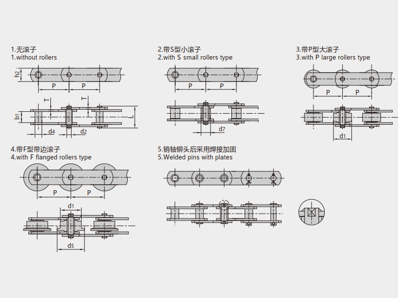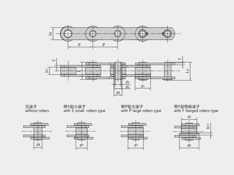 | 帶S型小滾子 | 帶P型大滾子 | 帶F型帶肩滾子 |